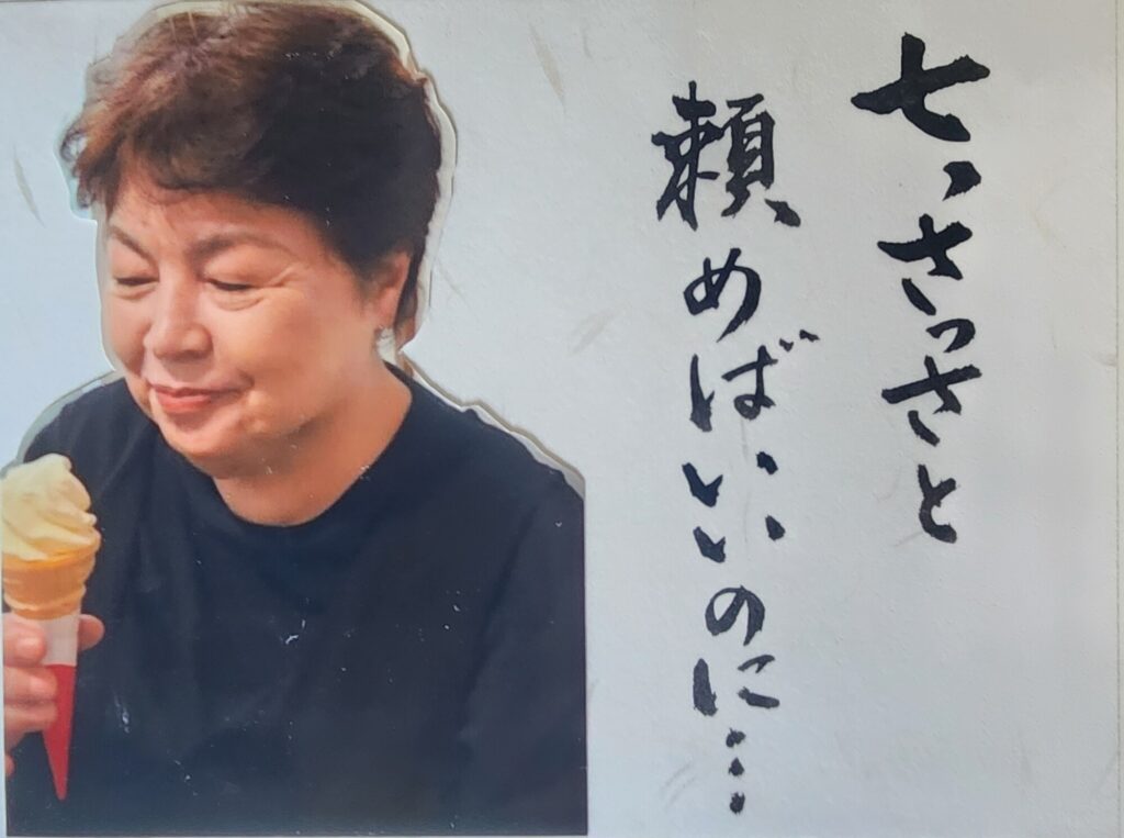で、その格言(?)の横に、先生がソフトクリーム食べてる写真(笑)